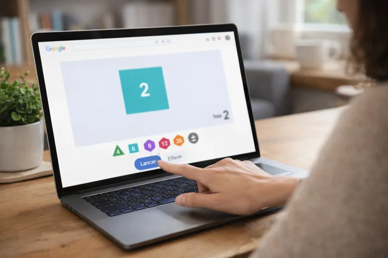 Le dé virtuel de Google est un outil intégré directement dans le moteur de recherche. Pas besoin d’application, pas de compte à créer. Vous tapez la bonne requête, et le générateur apparaît instantanément dans la page de résultats. Simple, rapide, efficace — comme doit l’être tout bon outil numérique.